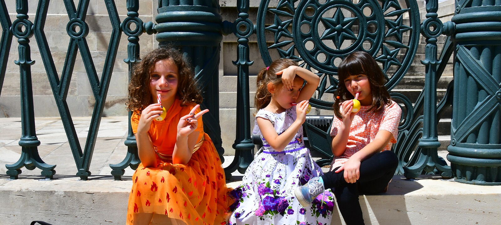 Three Kids Enjoying Lemon Sticks