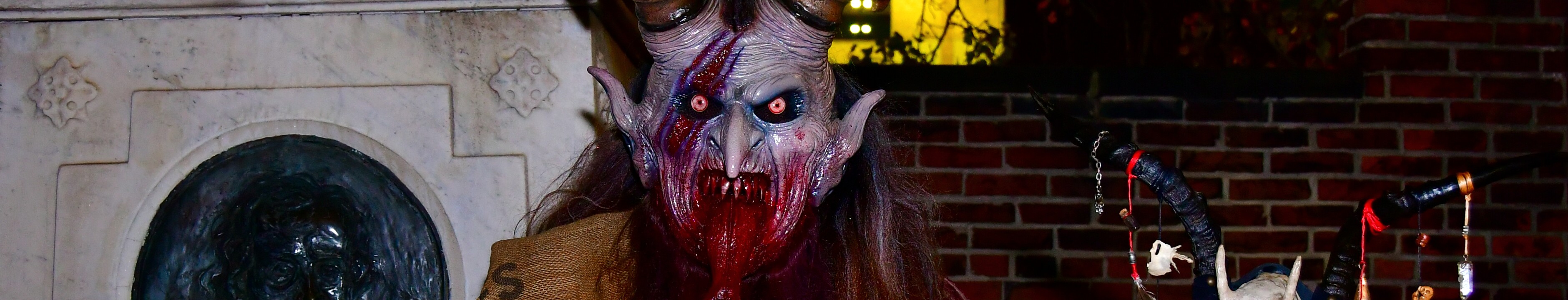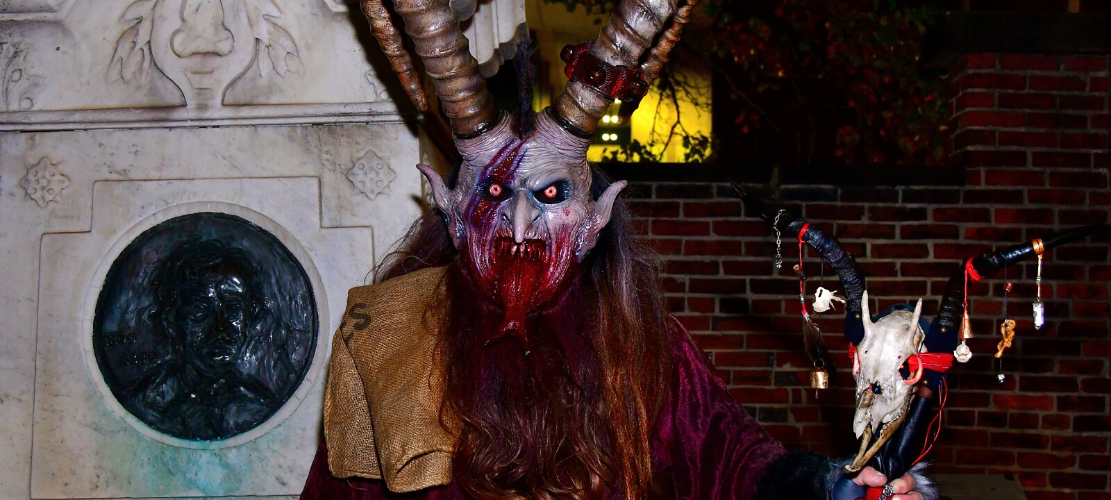 1Horns, Death, and a Smile 1 2Horns, Death, and a Smile 2 3Staff on the Original Grave of Edgar Allen Poe 1 4Krampus Visiting E.A. Poe 1 5Krampus Visiting E.A. Poe 2 6Krampus Visiting E.A. Poe 3 7Lantern and Staff 8Krampus Through the Gates 9Krampus Near The Clemms and New Poe Memorial 1 10Krampus Near The Clemms and New Poe Memorial 2 11Krampus Near The Clemms and New Poe Memorial 3 12Poe Face and Krampus Face 13Tour Guide Jeff and Krampus 1 14Tour Guide Jeff and Krampus 2 Ariel at the RotundaBrian M and Partner