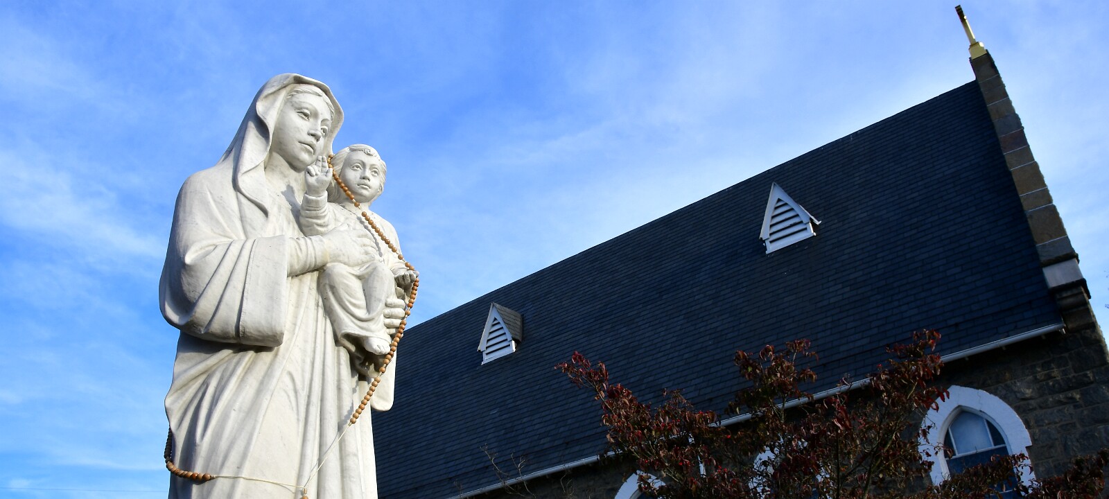 1Mary and Cross at the Front 226 and Prayer Hands 3Mary in Prayer 4Beyond the Round 5Side of the Old Church 6Belltower, Mary, and Jesus 7Faithful and Gentle 8Bell and Cross 9White and Red 10St. Mark Out Front 11Pray For Us 12Lion and St. Mark 13Up to the Bell House 14Triple Lights 15Hanging Three 16Hexagonal in White 17Side Profile of the Church 18Golden Yellow Cross 19A Chimney Stack 20Cross Topped St. Johns Grace United Church of Christ