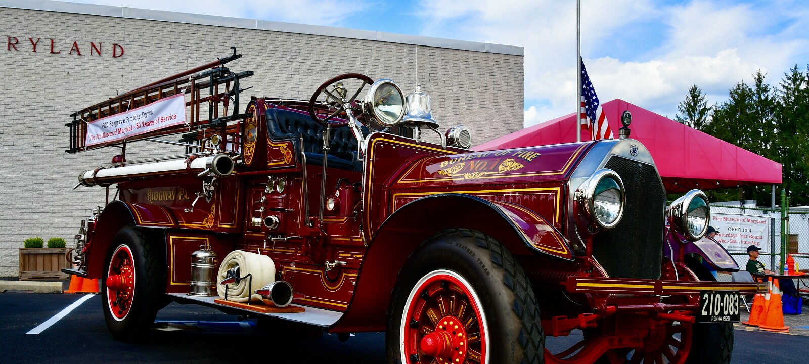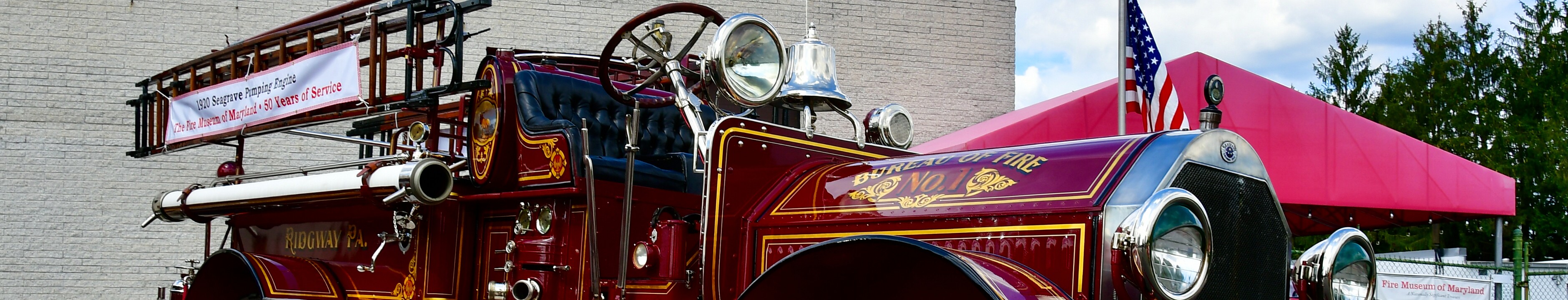 1Fifty Years of Service 2Ladders Tubes and Hoses 3Bell and Steering 4Slight Turn 5Classic Shape 6Seagrave Marked 7Eagle 8Ladder Lines 9Majestic Stag 10Like an Owl 11Fabulous Engines Outside of the Fire Museum of Maryland 12White Border 13Radiating 14Shine and Ropes 15Leather and Steel 16Sturdy and Worn 17Buereau of Fire No. 1 1935 Stutz Pumper From Havre de Grace