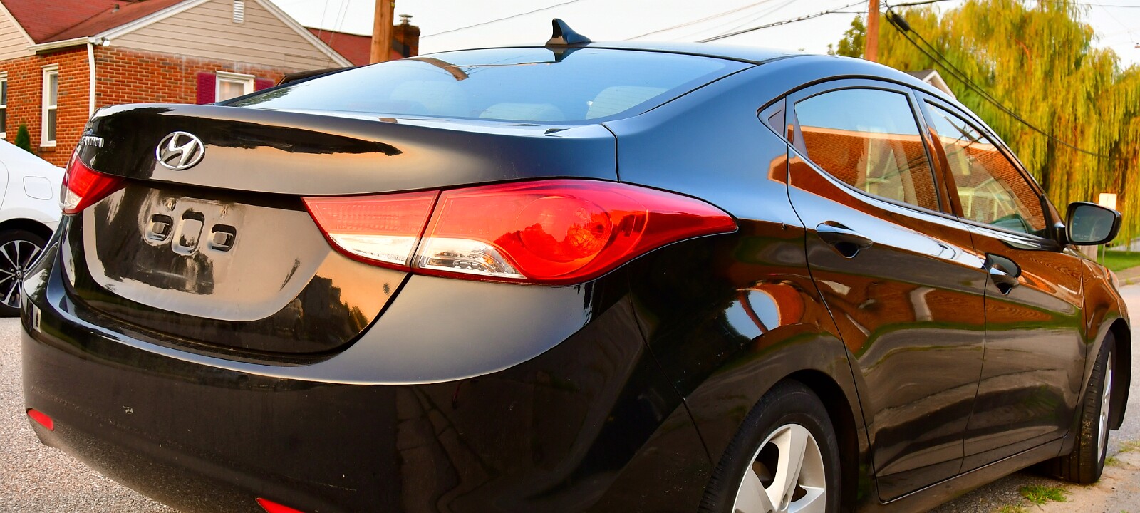 1Hyundai Elantra Rear Profile 2Slight Front End Damage 3Malachi Leaning on the Car 42013 Hyundai Elantra in Black in the Setting Sun 5Proud New Owner of the 2013 Hyundai Elantra 1 6Proud New Owner of the 2013 Hyundai Elantra 2 Van's GTO